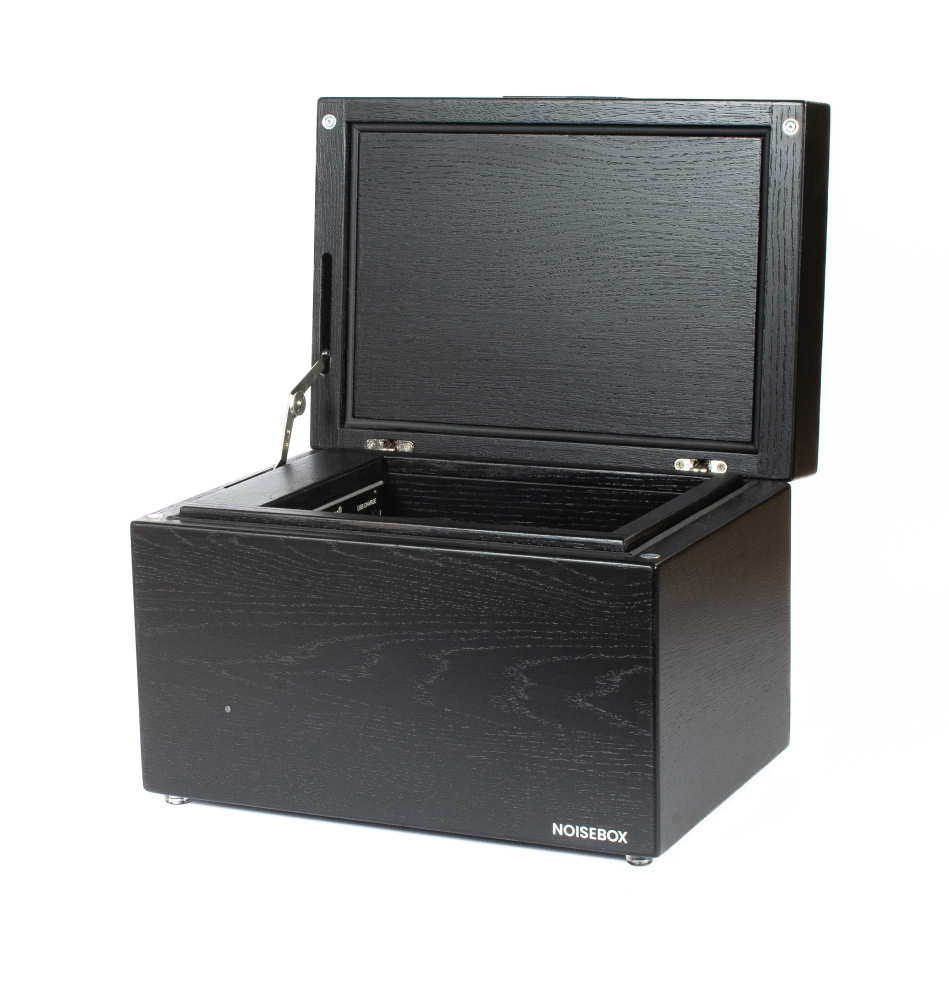 - NoiseBox verwendet keine Ultraschalltechnologie, die bei Menschen Unbehagen und Ermüdung verursachen oder das Gehör von Tieren schädigen kann.